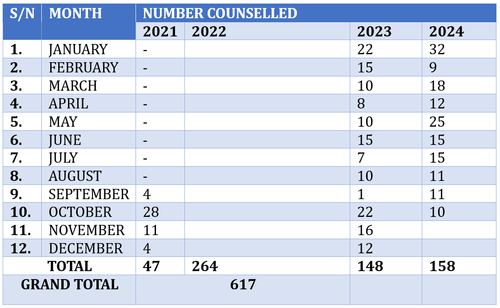 A Psychosocial Support Group (PSG) consisting of Community Service Officers, Magistrates, and Presidents of Customary Court Grade ‘A’, JDPC Ibadan, Asido Foundation, Correctional officers, the Ministry of women Affairs and The Counselling Association of Nigeria was formed and led to the establishment of Counselling centres across Magistrate Courts in Oyo State with Counsellors on ground to attend to offenders and help them rediscover purpose and carry out their sentencing with a repentant heart.